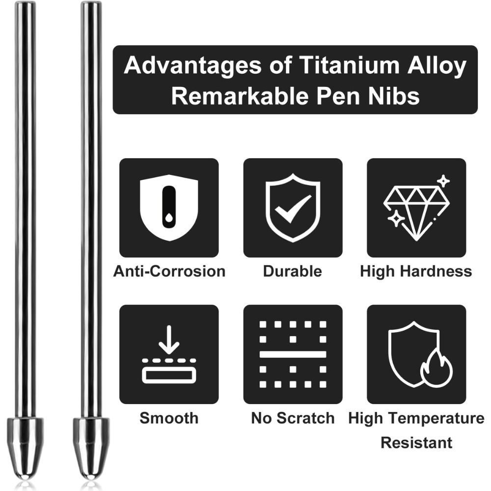مصنوعة من سبيكة التيتانيوم المتينة، تتميز هذه الرؤوس بالنعومة وطول العمر، كما أنها توفر تجربة كتابة دقيقة وسلسة بفضل الحساسية العالية وزمن الاستجابة المنخفض , لا تتكسر بسهولة وآمنة تمامًا على الشاشات