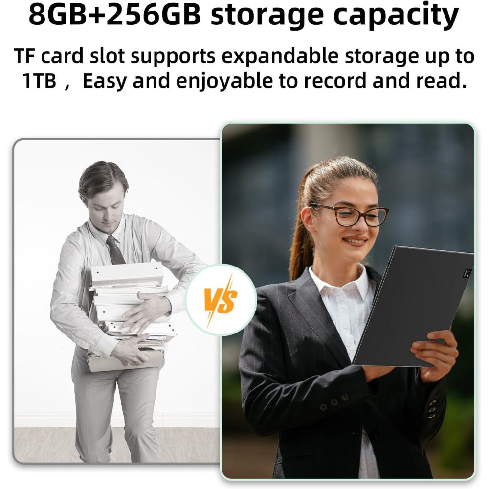 معالج Dimensity 1080 ثماني النواة مع ذاكرة وصول عشوائي 8 جيجابايت وسعة تخزين 256 جيجابايت (قابلة للتوسيع حتى 1 تيرابايت) يضمن أداءً سريعًا للتطبيقات والقراءة وتعدد المهام. بطارية بسعة 3700 مللي أمبير تدوم حتى أسبوع بشحنة واحدة.